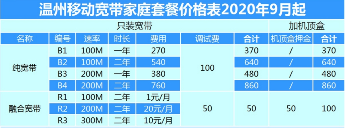 注: 1.用户新增“二胎” 宽带办理区域不限制,温州地区内有移动覆盖皆可办理。