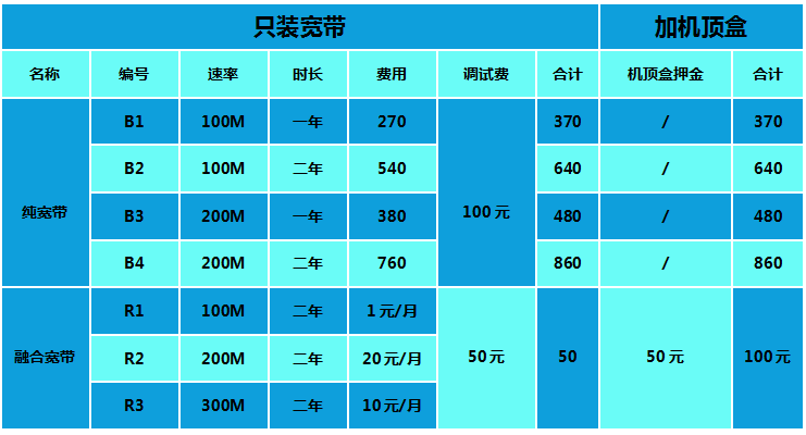 受理类型:全市所有家庭地址用户小区,农村宿舍,公寓,商铺